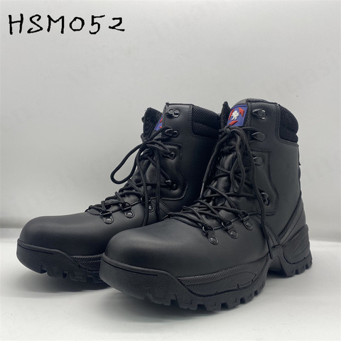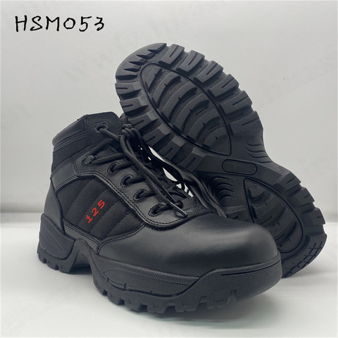 ZH รองเท้าบูทหนังสำหรับผู้ชายสีดำ HSM131,รองเท้าบูททหารสำหรับฝึกซ้อมกลางแจ้งพื้นรองเท้ายางมีที่จับแข็งแรงกันน้ำ